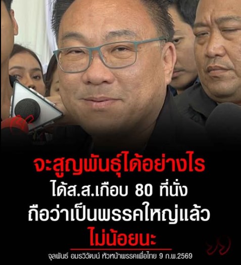 ท่ามกลางกระแสวิพากษ์วิจารณ์ถึงทิศทางและอนาคตทางการเมืองของพรรคเพื่อไทย ซึ่งบางส่วนมองว่าพรรคกำลังเผชิญกับความท้าทายครั้งใหญ่ที่สุดนับตั้งแต่การก่อตั้ง ส่งผลให้สถานะและความมั่นคงของพรรคถูกตั้งคำถาม นายจุลพันธ์ อมรวิวัฒน์ แกนนำคนสำคัญของพรรคเพื่อไทยและรัฐมนตรีช่วยว่าการกระทรวงการคลัง ได้ออกมาตอบโต้ข้อกังขาเหล่านั้นอย่างหนักแน่น เมื่อวันที่ 9 กุมภาพันธ์ 2569 โดยย้ำถึงความมั่นคงของฐานเสียงและสถานะในสภาผู้แทนราษฎร ซึ่งยังคงเป็นปัจจัยสำคัญที่ไม่อาจมองข้ามได้